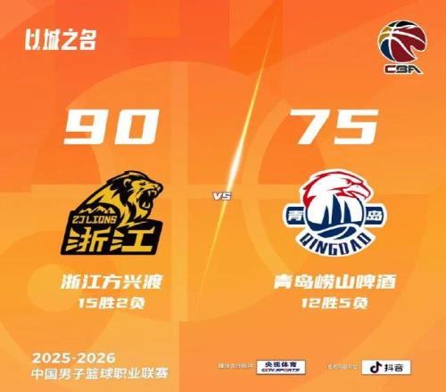 2026年1月19日,2025-2026赛季CBA联赛常规赛第17轮,青岛崂山啤酒客场对阵浙江方兴渡。本场比赛,韦瑟斯庞、米奇因伤缺席,段昂君、赵嘉义发挥出色,年轻球员敢打敢拼,全员均有进账,最终75-90负于对手,输掉比赛。