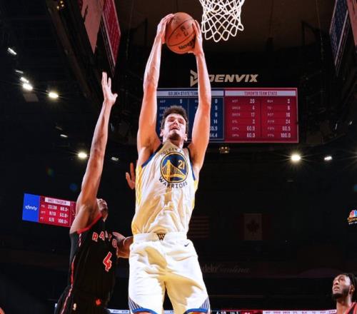 库明加继续军训英格拉姆,单打莫格博,博斯特也续上三分球。节末希尔德造三分犯规,库明加助攻博斯特,三节打完,勇士94-108猛龙,全靠库明加支撑!决战第四节,猛龙替补重新扩大分差,梅尔顿上篮+斯潘塞扔三分,希尔德反击继续追分。猛龙一直都是全主力,希尔德轰三分,库明加造杀伤,节末希尔德和库明加继续扔三分球。最后2分钟,科尔也换下库明加和希尔德,最终勇士127-145惨败猛龙。