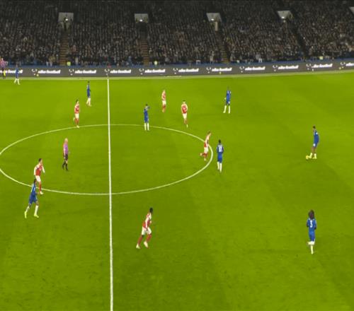 尤其在左路,切尔西从边路制造的威胁很大,考虑到他们缺乏首选的正印中锋——若昂-佩德罗和利亚姆-德拉普提供了截然不同的特点,前者更喜欢回撤接应和参与组织,而后者则善于冲击防线身后空间——这一点尤为令人印象深刻。