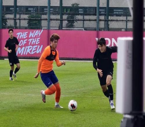 山东泰山与龙仁队进行热身赛。(泰山俱乐部供图)