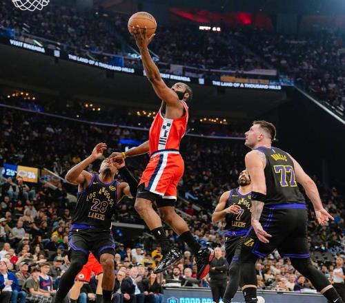 湖人和快船洛杉矶德比。快船先发:伦纳德、科林斯、祖巴茨、邓恩、哈登!湖人先发:詹姆斯、拉拉维亚、艾顿、斯玛...